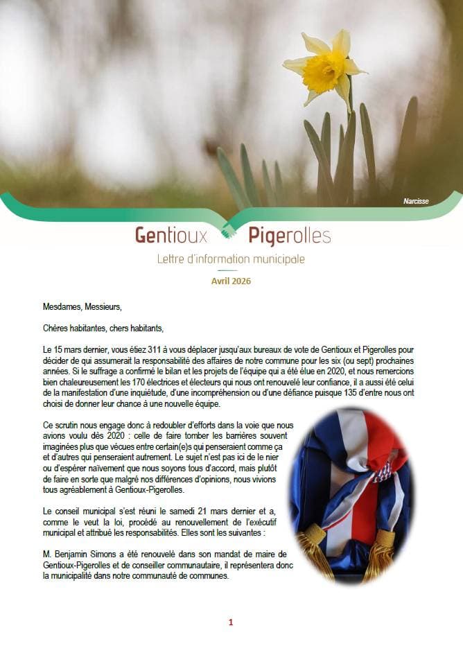 LETTRES D'INFORMATIONS MUNICIPALES Retrouvez ci-dessous les lettres d’informations. 2026 2025 Lettre n°15 - Avril 2025 Lettre n°16 - Août 2025 2024 Lettre n°13 - Février 2024 Lettre n°14 - Décembre 2024 2023 Lettre n°10 - Février 2023 Lettre n°11 - Mai 2023 Lettre n°12 - Octobre 2023 2022 Lettre n°6 - Janvier 2022 Lettre n°7 - Mars 2022 Lettre n°8 - Juillet 2022 Lettre n°9 - Octobre 2022 2021 Lettre n°4 - Mai 2021 Lettre n°5 - Octobre 2021 2020 Lettre n°1 - Juin 2020 Lettre n°2 - Août 2020 Lettre n°3 - Octobre 2020